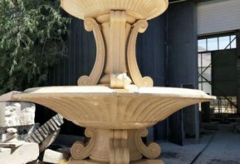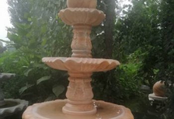歐式大理石石雕流水噴泉,紅晚霞點綴