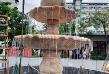 精美多層風水球噴泉石雕晚霞紅藝術裝置