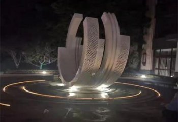 不銹鋼創意圓環噴泉雕塑——給小區售樓部注入新穎水景