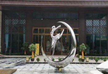 不銹鋼創意月亮上跳芭蕾舞女孩雕塑擺件