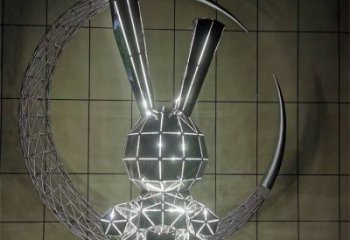 城市燈光裝飾不銹鋼鏤空月亮幾何兔子