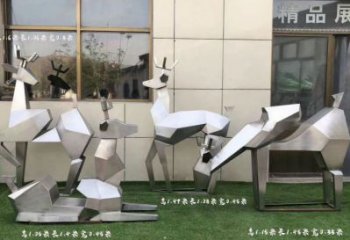 不銹鋼鹿雕塑景觀拉絲切面噴漆創(chuàng)意戶外幾何公園裝飾