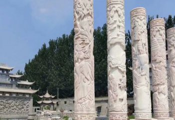 仿古石雕龍柱雕塑,為廣場增添古典魅力