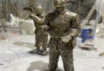 玻璃鋼仿銅制茶炒人物民俗小品茶園雕塑擺件