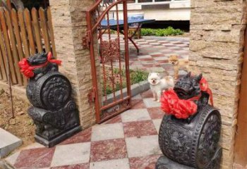 古雅青石仿古石獅子拴馬柱,點綴庭院門前