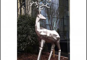 不銹鋼雕刻小鹿戶外園林幾何抽象雕塑