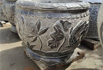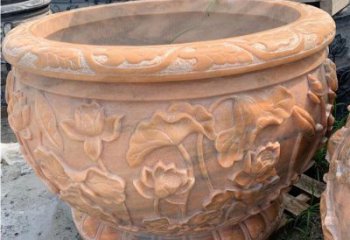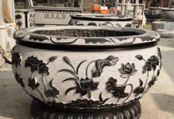 中式別墅石灰浮雕荷花圓形花盆水缸
