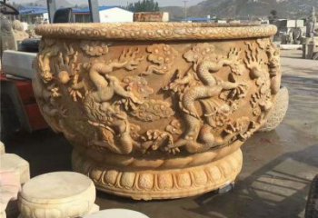 漢白玉浮雕荷花養魚缸,精美庭院裝飾戶外中式花盆