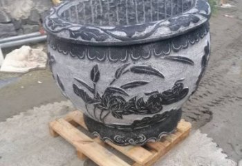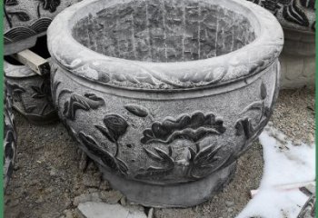 仿古青石水缸魚缸安放荷花刻飾鯉魚