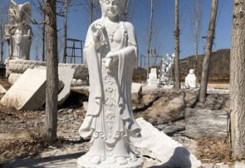 經典傳統工藝精致大理石浮雕觀音站神像擺件