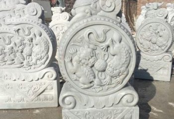 天然石材浮雕太平吉祥抱鼓石,點綴別墅門口