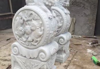 精美大理石石雕抱鼓雕塑,裝點(diǎn)別墅庭院門口