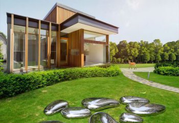 高端室內草坪裝飾,不銹鋼雕塑鏡面石頭安放