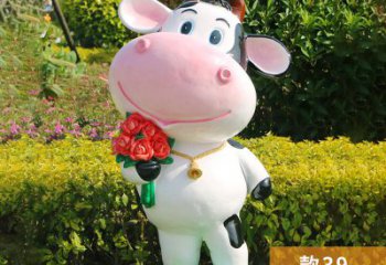 萌卡通牛雕塑,漫步在玻璃鋼公園