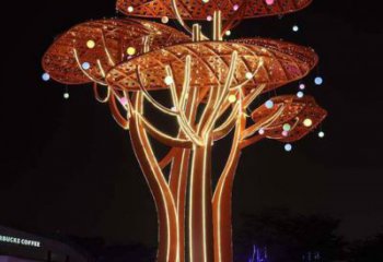 現代風格不銹鋼鏤空樹雕塑景觀裝置