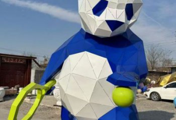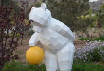 大型不銹鋼幾何創意拍球熊雕塑