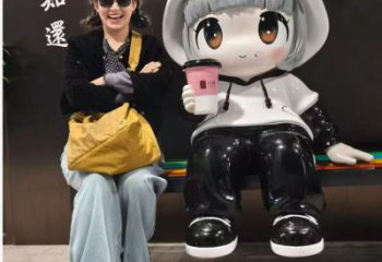 熊貓帽潮酷少女:不銹鋼卡通景觀里的活力符號
