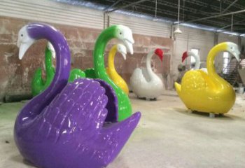 創意彩繪玻璃鋼天鵝雕塑游樂園