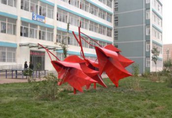 小區不銹鋼雕塑——楓葉創意抽象紅色裝飾