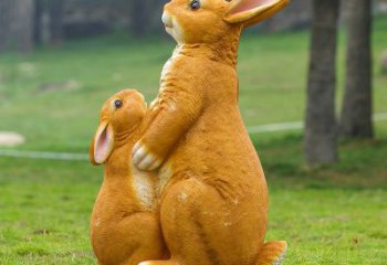黃色兔子母子雕塑,精美玻璃鋼動物園裝飾