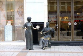定制鑄銅街頭藝人雕像民俗文化人物雕塑園林景觀小品擺件音樂
