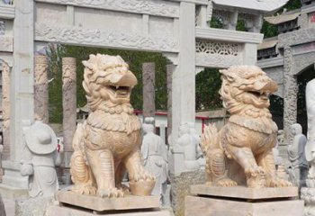 秋日晚霞紅獅子庭院石雕浮雕雕塑