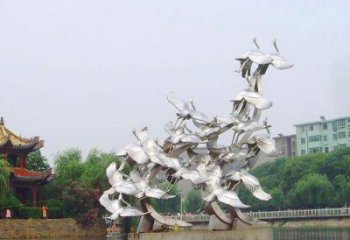 讓仙鶴展翅高飛,不銹鋼雕塑裝飾環境