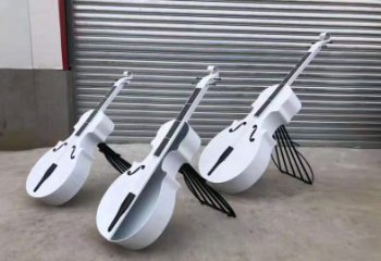 玻璃鋼雕刻大廈室內裝飾白色大提琴裝飾品