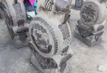 放置于寺廟、住宅等建筑的門檻兩旁,可以穩固門面。鼓面常刻有螺旋紋,故又稱為螺鼓石。傳說有漢白玉浮雕小象擺件抱鼓石雕塑進入廟中,門鼓即會嘎嘎作響提醒廟中人。