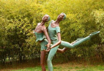 仿銅雕雙人滑冰玻璃鋼城市花園廣場(chǎng)人物裝飾