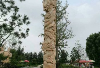 大型浮雕盤龍石柱雕塑擺件
