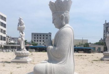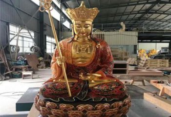 而大型地藏王雕塑則多為光頭或是頭戴毗盧冠,身披袈裟的出家僧人之相。藝術(shù)精美地藏王雕塑持錫杖,一手持蓮花,或是手持幡幢、寶珠等。藝術(shù)精美大型地藏王雕塑還常有以一頭形似獅子的怪獸為坐騎的,名號(hào)曰:或。寶珠地藏,大型地藏王雕塑持寶珠,右手結(jié)甘露印,專門(mén)救度餓鬼道。